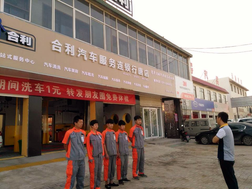 - 合利汽车服务连锁行唐店是目前行唐地区唯一一家合利指定授权的汽车服务连锁中心,同时也是行唐当地3M公司唯一正式授权的汽车美容施工中心。店内业务涵盖汽车清洗、美容、汽车装饰、汽车贴膜、汽车保养、汽车快修等一系列汽车服务项目,为广大车主提供一站式的汽车服务。